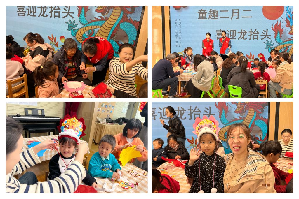 活动伊始,社工向家长和孩子们介绍了二月二龙抬头的来历和习俗,激发了他们对传统文化的浓厚兴趣。接着社工详细讲解了龙帽与龙包的制作方法。在社工及志愿者们的指导下,孩子们拿起彩纸、针线和胶水,与家长一起动手制作龙帽和龙包。经过一番努力,一个个色彩斑斓、栩栩如生的龙帽和龙包终于呈现在大家眼前。整个过程中,亲子间的互动十分频繁,欢声笑语此起彼伏。一个小女孩在妈妈的帮助下,成功地将最后一个龙帽部件拼接好,她兴奋地跳起来,大声喊道:“妈妈,我们成功啦!”妈妈则笑着给予了她一个大大的赞。