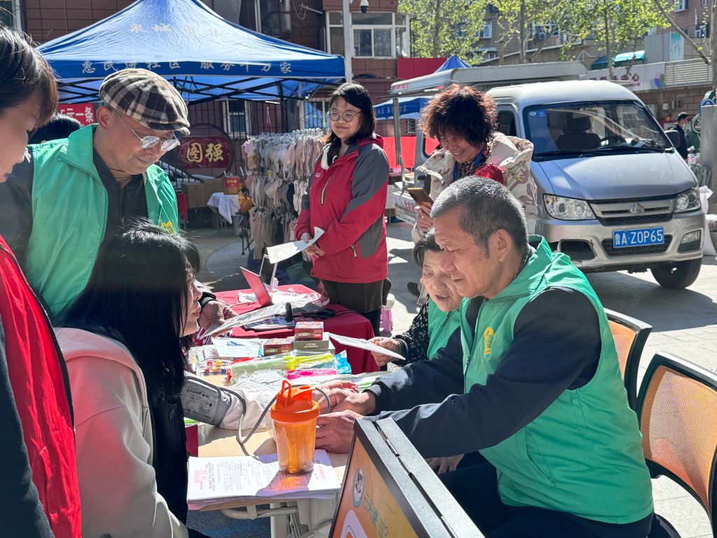 活动现场热闹非凡,各类服务摊位有序排列,涵盖生活服务、文化教育、健康关怀等多个领域。专业社工带领志愿者为居民提供政策咨询、心理咨询等专业服务,耐心解答居民的困惑,帮助他们解决生活中的难题;在义诊摊位前,医护志愿者为居民测量血压、血糖,普及健康知识,中医把脉,现场就诊,提醒居民关注自身健康;文化教育类摊位上,志愿者们组织书籍阅读活动,丰富居民的精神文化生活;此外,还有手机贴膜,免费测视力等服务,传递社区温情。