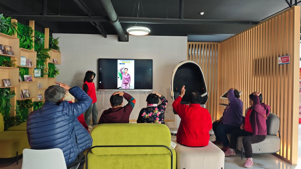 热场过后,便是回顾拍拍操环节。社工先是耐心地带领大家回顾了拍拍操的每一个动作。随后,老人们一起伴随音乐做操,他们的动作整齐划一,充满活力。“再来一遍!” 现场的老人们异口同声地说道。他们对拍拍操的热情丝毫不减,整齐的拍打声在活动室里再次响起。
