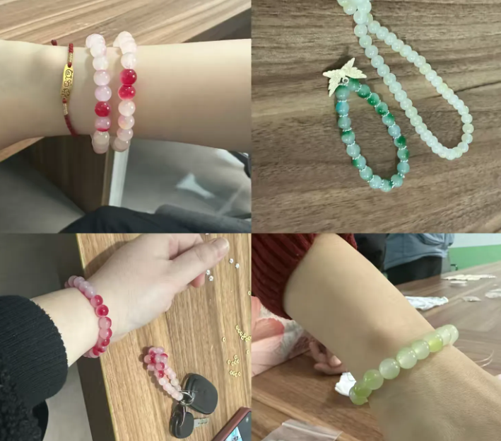 于大姐兴奋地展示自己的半成品说:“平时忙于家务和工作,很少有机会静下心做手工。这次活动不仅让我学会新技能,还认识了很多新朋友,感觉特别放松开心。” 完成作品后,大家脸上洋溢着自豪笑容,佩戴自己亲手制作的珠串拍照留念。