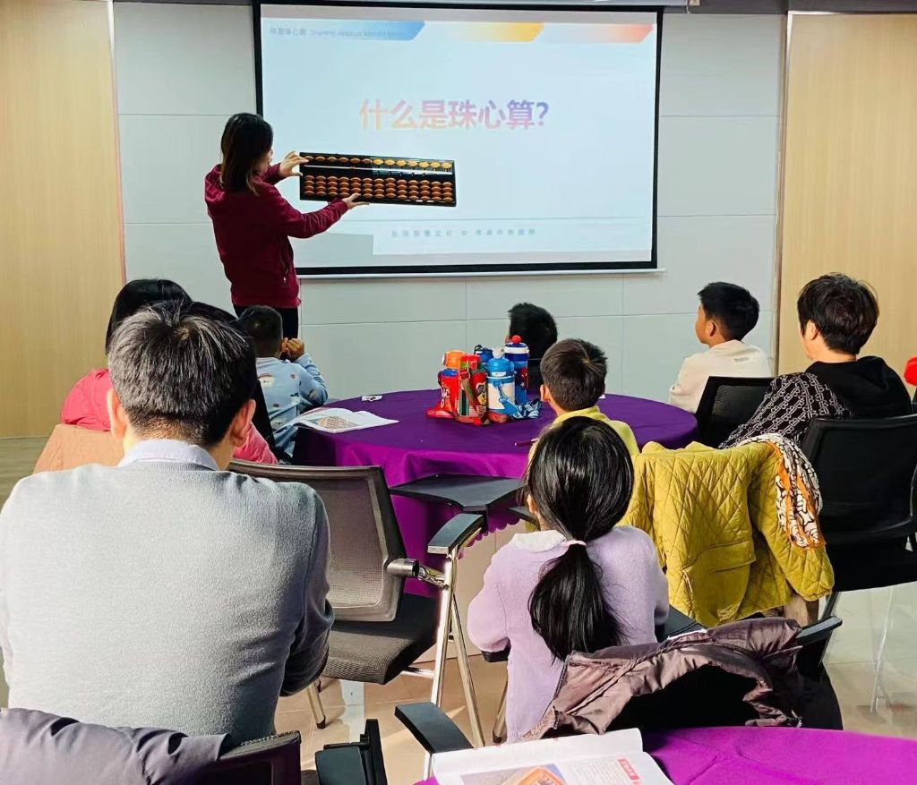 神墨教育的专业老师图文并茂的为小朋友们详细介绍了珠心算的历史渊源、发展历程及在中国传统文化中的重要地位。小朋友们听得津津有味,积极举手提问,现场气氛十分活跃。科普讲解结束后,小朋友们在老师的指导和家长的协助下亲手制作属于自己的小算盘,不一会儿,一个个精致的小算盘便呈现在眼前,孩子们兴奋地展示着自己的作品,脸上洋溢着自豪和喜悦。