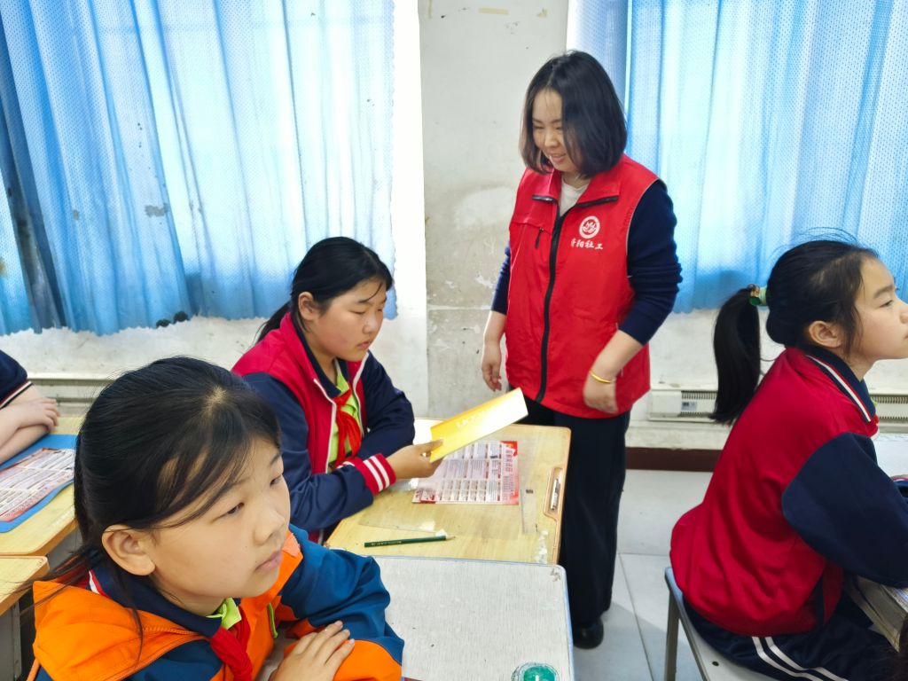 课堂上,社工化身“安全小卫士”,通过通俗易懂的语言、鲜活有趣的案例,从交通安全、防溺水安全、居家安全等方面展开讲解。孩子们全神贯注,一双双好奇的眼睛紧紧盯着社工,认真聆听每一个安全知识要点。来到有奖问答环节时,大家纷纷举手抢答,教室里便如春笋破土般,齐刷刷举起了一双双小手。有的同学声音清脆响亮,有的同学则条理清晰,每一个回答都展现出孩子们的机敏与聪慧,社工的眼中满是欣慰与赞赏,及时送上小奖品,鼓励大家踊跃参与,要积极分享自己的见解,现场气氛热烈而活跃。