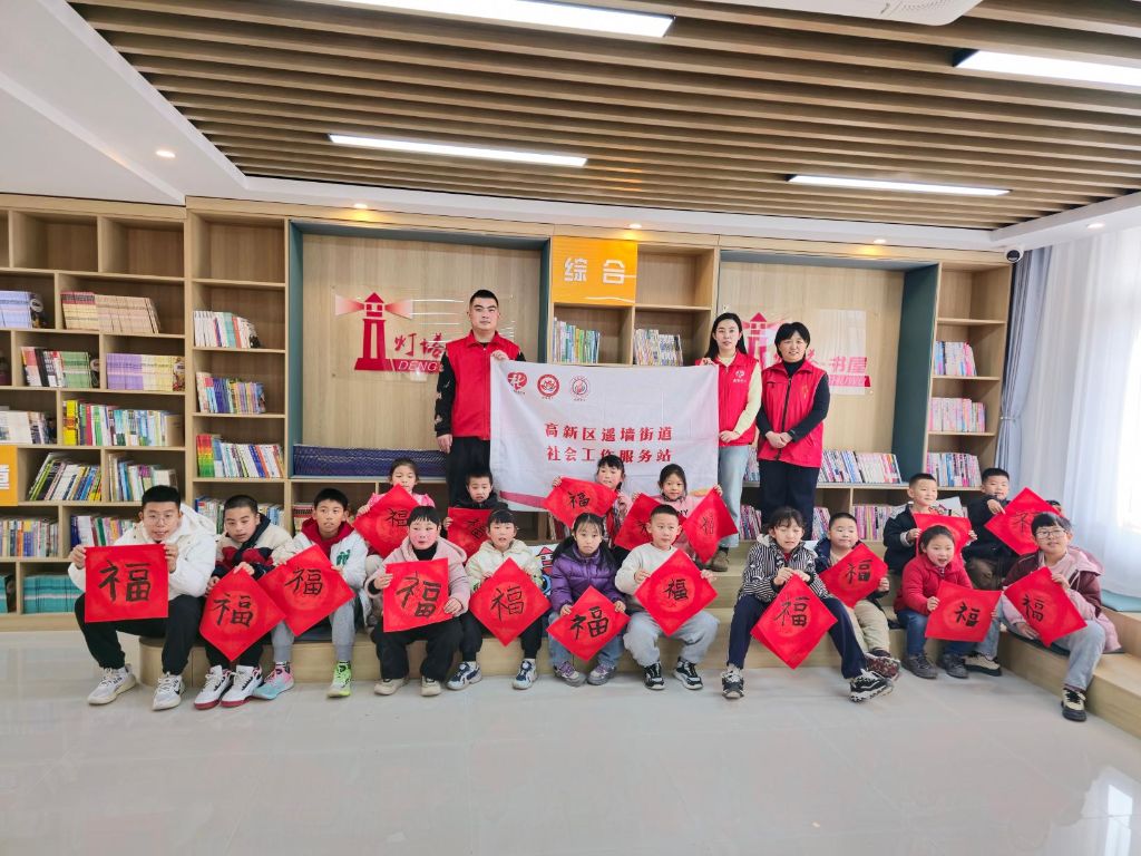 “迎新春、贴福字”体现了中华民族的传统文化精髓。为了丰富困境儿童的寒假生活体验,1月24日,遥墙街道社工站携手高新区未成年人救助保护中心,在遥墙街道便民服务中心成功举办了“童心绘福迎新春 笔墨浓情中国年”活动。该活动的宗旨在于帮助困境儿童度过一个充满欢乐、温馨且富有意义的春节假期。