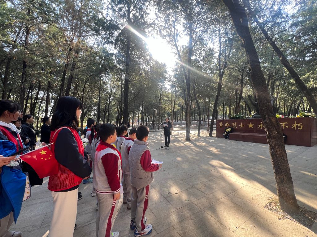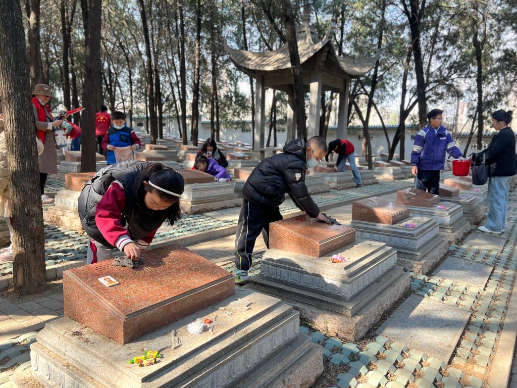 仪式结束后,大家前往烈士墓区。在社工和志愿者的指引下,学生和家长们拿着清洁工具,小心翼翼地擦拭烈士墓碑,将亲手制作的手工花敬献在墓前,用实际行动表达着对先烈的敬重与感恩。之后,众人瞻仰烈士纪念碑,参观烈士纪念馆,通过珍贵的文物和详实的史料,深入了解先烈们的革命历程。