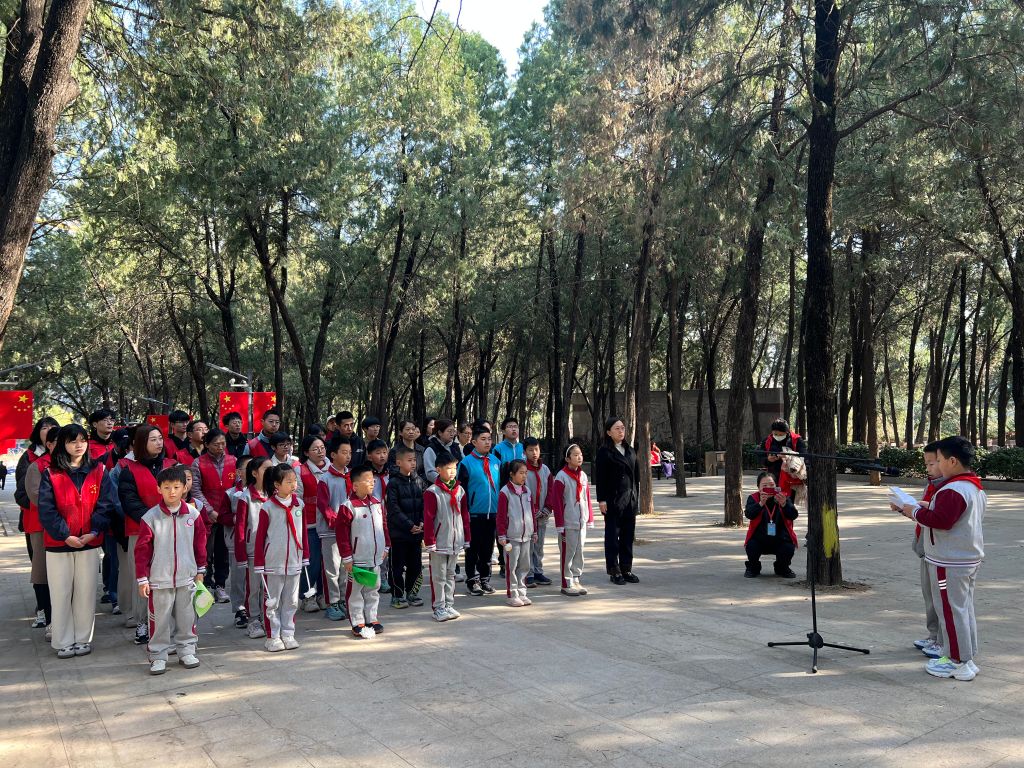 在庄严肃穆的烈士纪念碑前,全体人员肃立,激昂的国歌声响起。国歌毕,大家低头默哀,向革命先烈致以最沉痛的哀悼。随后,社区书记发表讲话,讲述革命先烈的英勇事迹,学生代表也上台发言,表达继承先烈遗志的决心。紧接着,少先队员们庄严宣誓,行队礼,誓言铿锵有力。