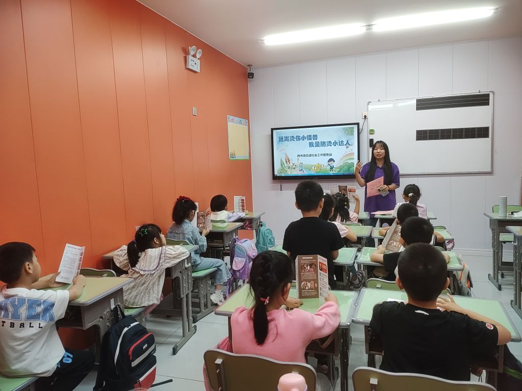 为了提高辖区青少年对烧烫伤事故的防范意识,并掌握基本的急救技能,西市场街道社工站于近日成功举办了一场主题为“远离烫伤小怪兽 我是烫伤小达人”的青少年防烫伤宣传活动。此次活动旨在通过互动体验、知识讲座等形式,增强青少年的安全意识,减少因意外导致的伤害。