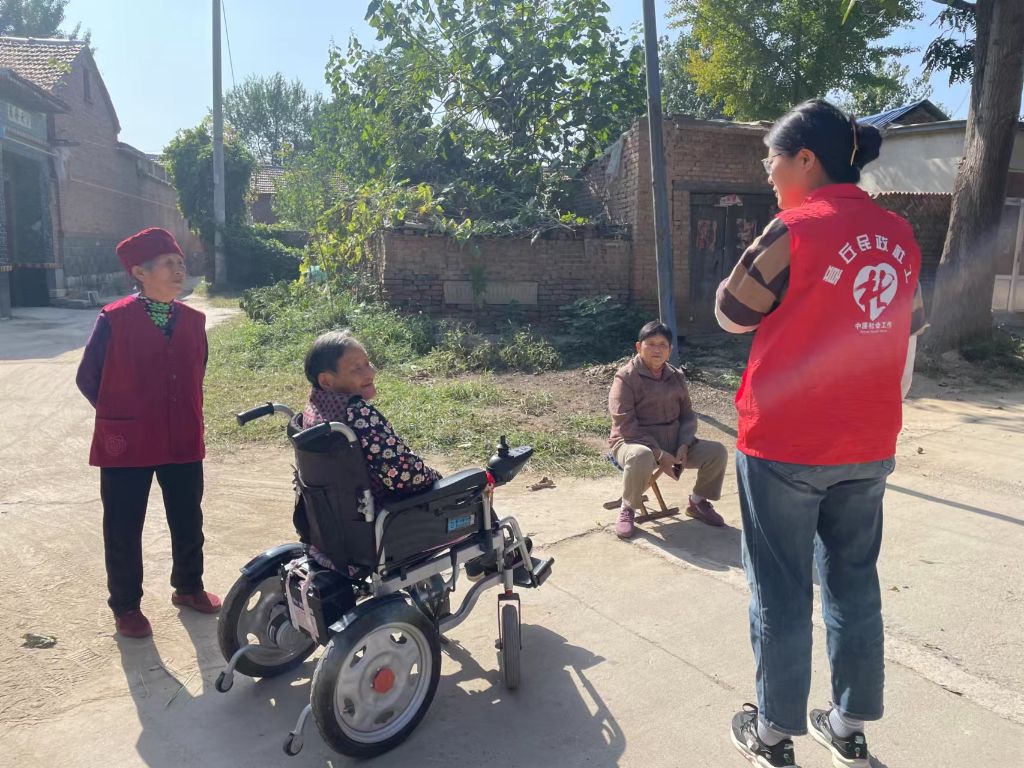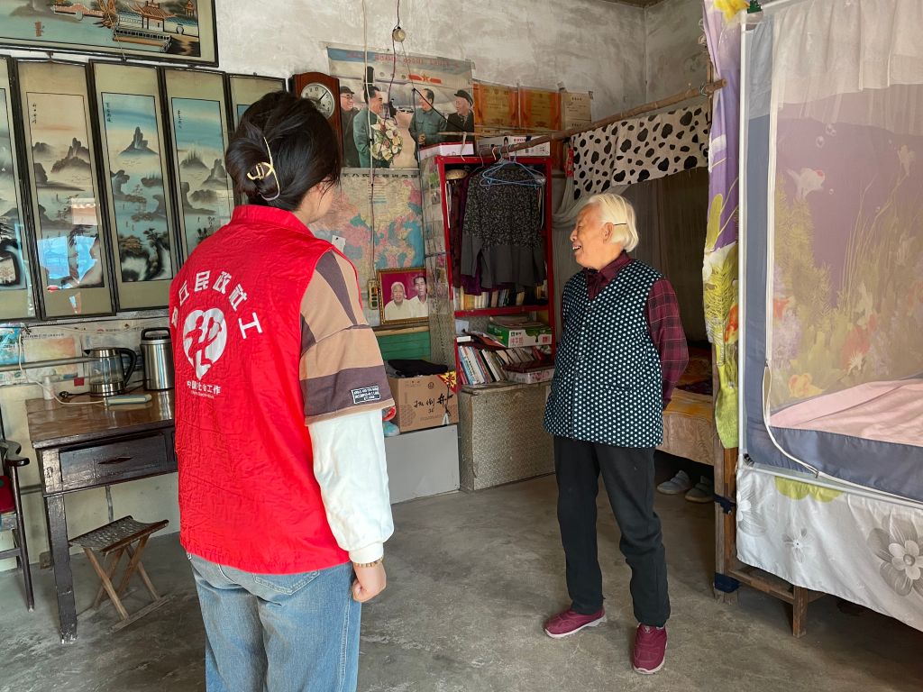 10月10日上午,社工和网格员、民政所工作人员一行人首先来到了101岁的李奶奶家中,“李奶奶,重阳节快到了,过来看看您,给您带了油和面粉,祝您节日快乐!”“我太高兴了!谢谢你们一直惦记我。”看到社工的到来,李奶奶高兴地说道。随后,社工和李奶奶唠起家常,详细了解她最近的生活起居和健康状况,临走时,社工再三叮嘱李奶奶要多保重身体,如果生活上遇到困难要及时向社工寻求帮助。