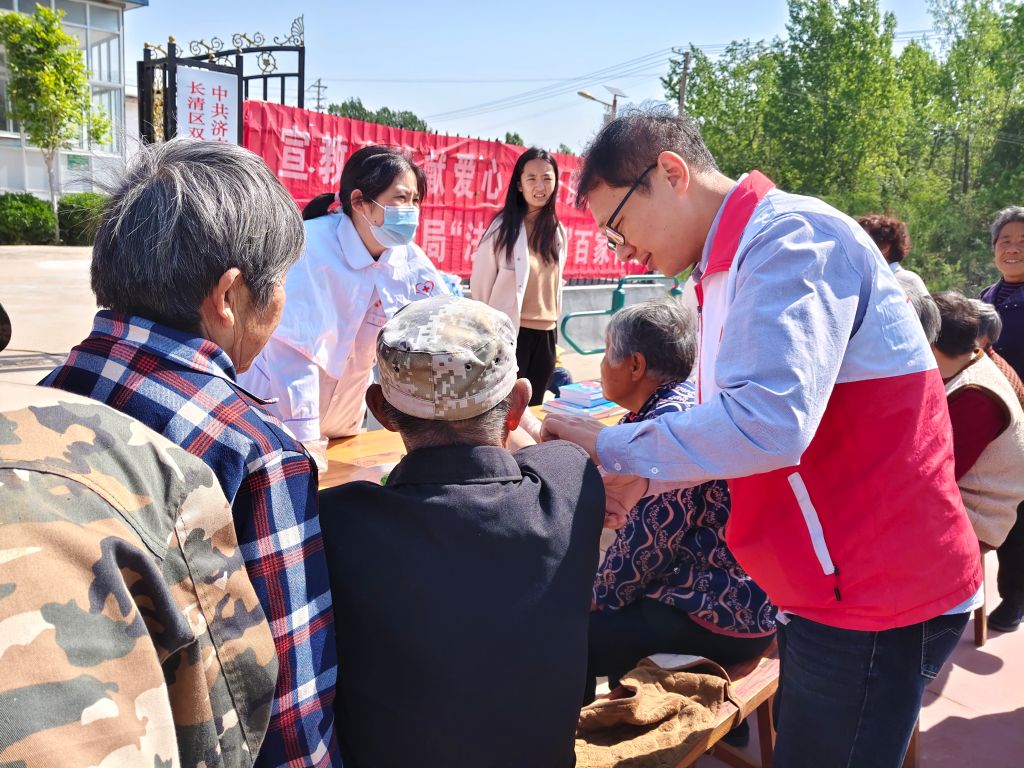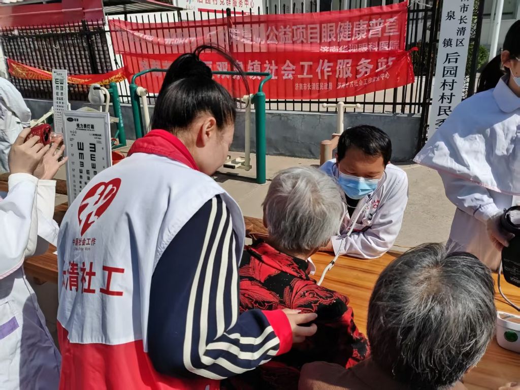 为切实提升居民健康意识,增强居民健康管理能力,2025年4月25日,双泉镇社工站联合残联、长清区人民医院、济南关节外科医院、济南华视眼科医院等多方社会资源,在后园村文化广场开展“健康护航,关爱同行”主题义诊活动。此次活动吸引了近100名居民参与,以专业服务与暖心关怀,为社区居民送上健康“大礼包”。