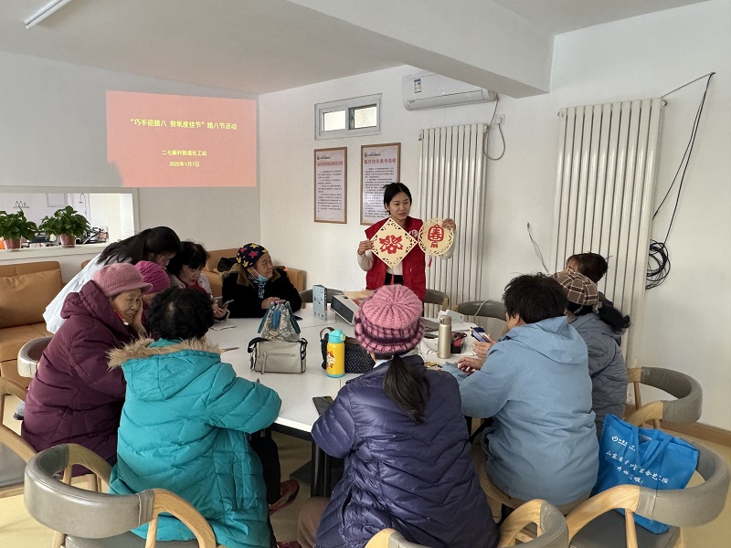 过了腊八就是年,一年一岁一团圆。新春将至,为弘扬中华传统民俗文化,让辖区独居老年人感受到浓厚的节日气氛,在腊八节当天,二七新村街道社工站在梁南日间照料中心开展了“巧手迎腊八 剪纸度佳节”腊八节剪纸活动,为即将到来的新春增添一抹喜庆的“中国红”。