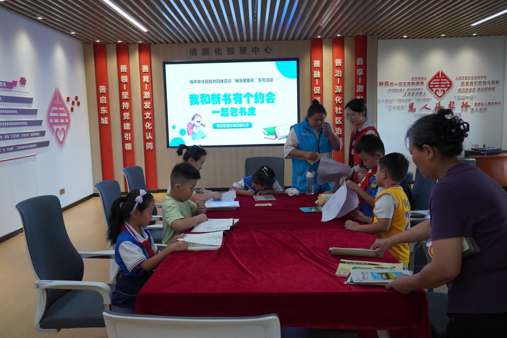 随着暑假的悄然结束,新学期的序幕正式拉开。为激发辖区儿童的读书热情,鼓励孩子们多读书、爱惜书,通过包书皮来培养学生爱惜书本的良好习惯。9月2日,郭店街道社工站联合东城名郡社区开展“我和新书有个约会——开学季包书皮”活动。