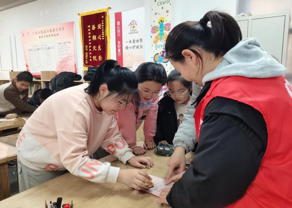 为进一步弘扬中华优秀传统文化,培养儿童对非物质文化遗产的认识与热爱,感受中国传统文化的博大精深与无限魅力,同时提升社区儿童团队凝聚力,领悟工匠精神,营造浓厚的文化节日氛围。王舍人街道社工站联合万象新天社区,借助团区委“青鸟计划”实习社工的力量于2025年1月16日-2月10日组织开展了“春节里学非遗”儿童非遗文化学习体验小组活动,为社区儿童带来了一场丰富多彩的文化盛宴。本次活动共设6节,围绕具有春节元素的拓印、剪纸等和四大发明主题开展,旨在通过实践探索,让社区儿童在动手制作中感受春节主题非遗手工艺品的独特魅力。