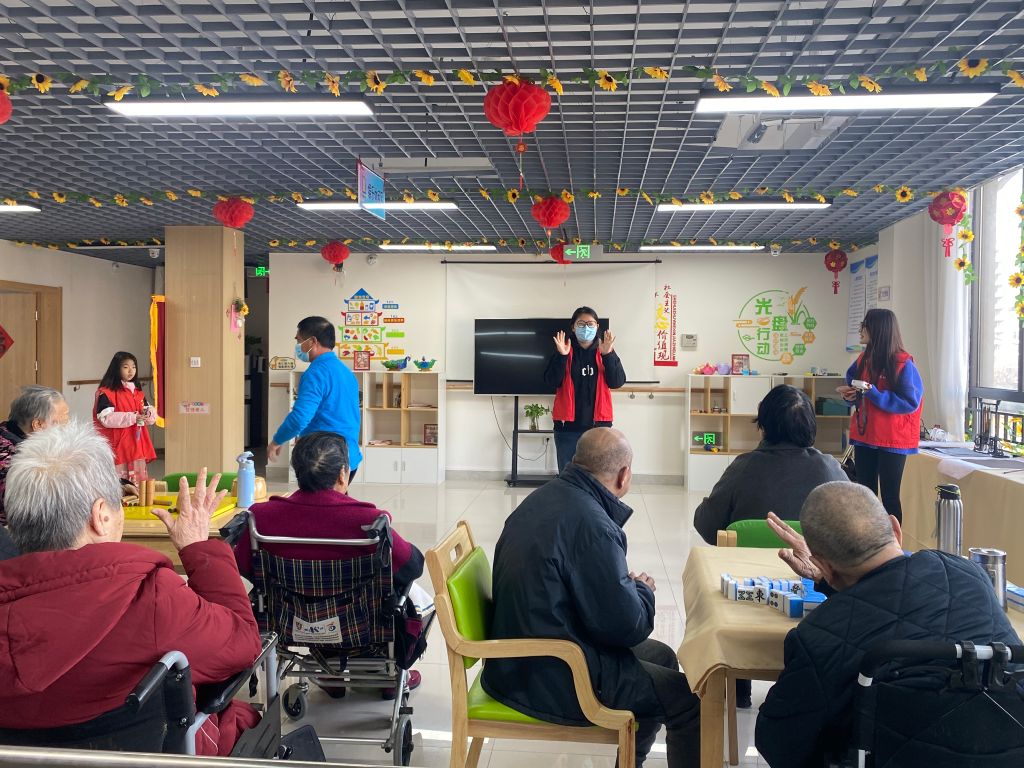 活动伊始,社工们以一套精心设计的手指小游戏迅速吸引了老人们的注意,考虑到老人身体机能特点,手指操既能活动关节,促进血液循环,又极具趣味性。社工耐心示范,不停地鼓励“爷爷奶奶慢慢来、像我这样、指肚对指肚......”大家纷纷跟着节奏比划着,看似简单的互动,背后是社工对老年群体生理、心理需求的精准洞察,以轻松游戏为媒介,渐渐开启老人社交融入的第一步。随后,驻站社工与老人们亲切交谈,耐心与他们“拉家常”,鼓励大家畅所欲言讲述过往元宵节的回忆,社工通过陪伴,给予老人满满的情感支持,为老人送上最温馨的节日祝福。