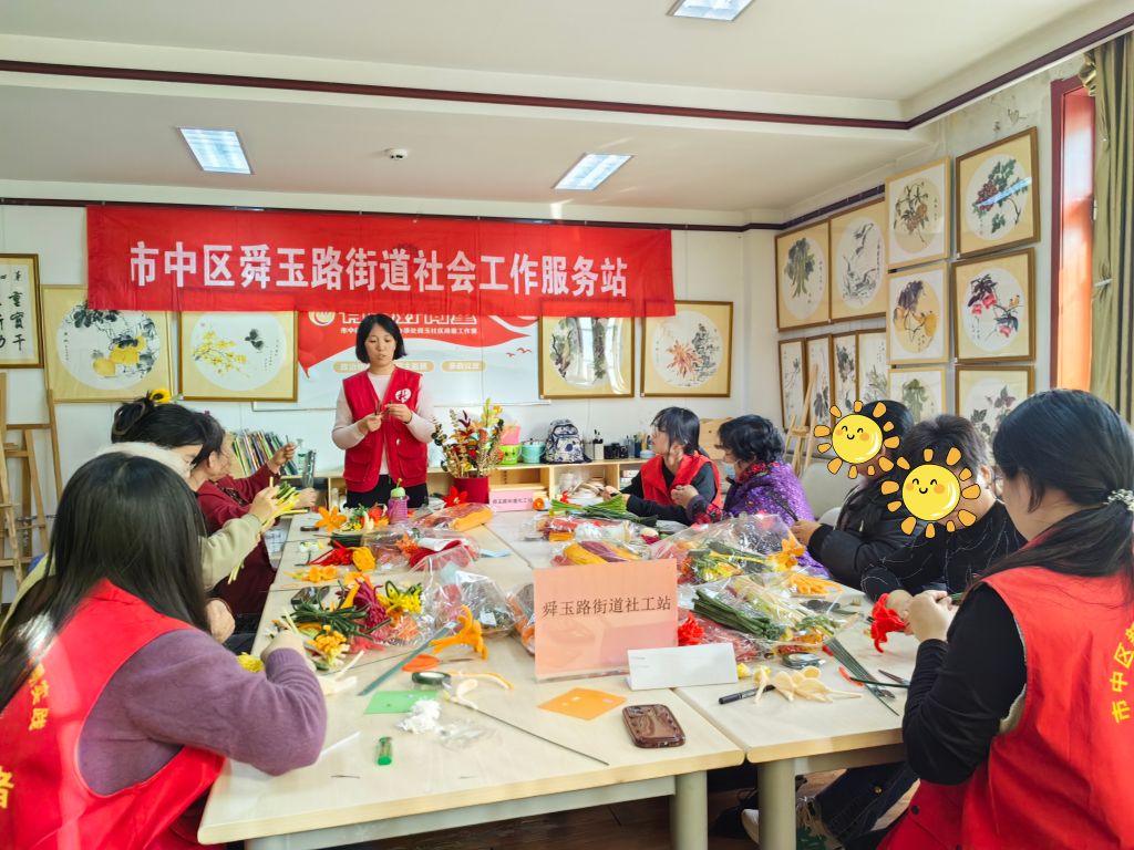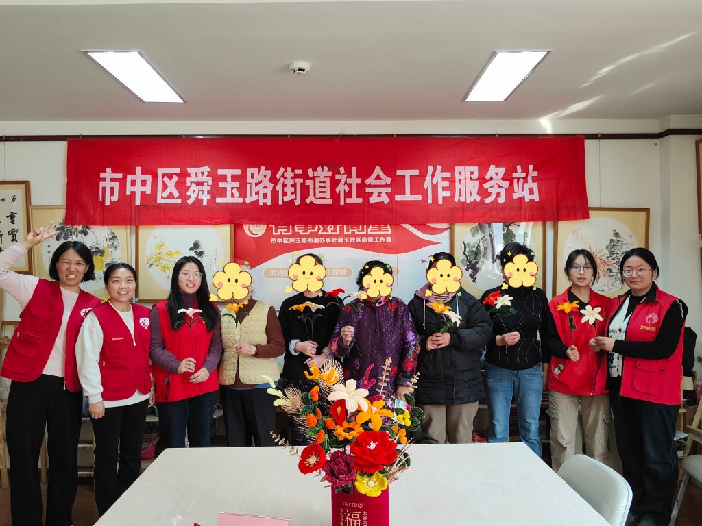 因此,舜玉路街道社工站以帮助照护者舒缓压力、获得朋辈支持为重点,开展“微爱相伴,助力减压”低保重残家庭照护者互助小组,通过手工花束、减压游戏等多种形式,帮助其缓解压力,获得朋辈支持,增强自我认同,提升社会参与,助力其对未来充满希望与信心,更加开心的生活。