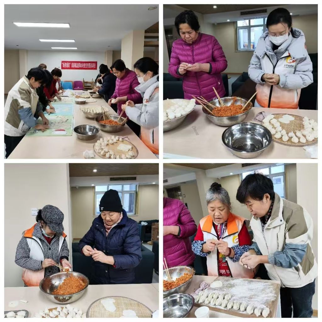 备好材料以后,社工、志愿者、网格员等分工协作,有的擀皮,有的包,有的准备煮水饺的锅、水、盘子等,在此过程中,大家有商有量,相互之间的配合与默契更进一步,关系也在相互夸赞、肯定中升温。饺子一个个包好,整齐地码放在盘子上。在包了一定数量后,部分志愿者开始下锅煮。等到美味的饺子出锅,屋内瞬间充满烟火气,也处处充满着集体劳作、期待成果的温暖味道。