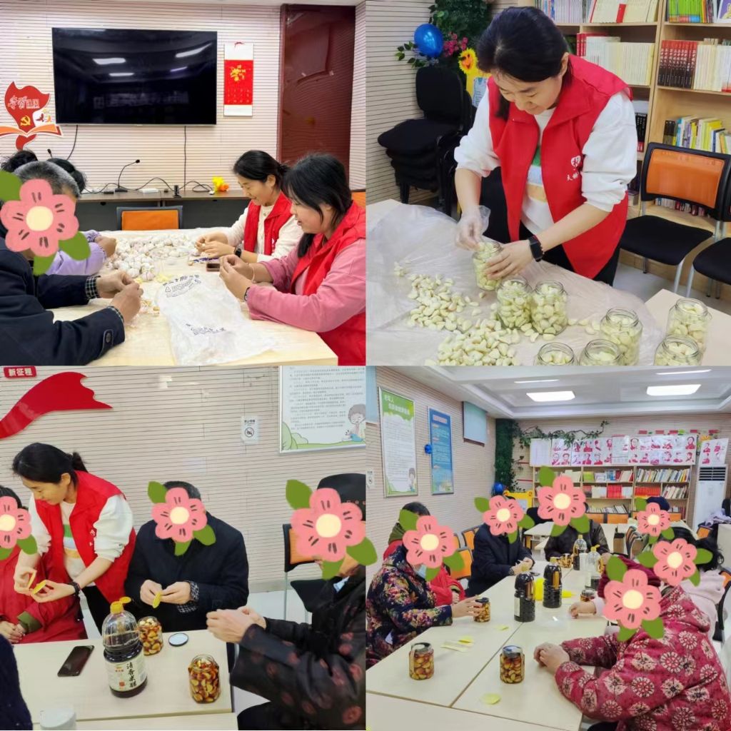 社工带领志愿者提前备好了干净的蒜瓣。活动现场,社工将准备好的蒜瓣、密封罐、封口贴、香醋等材料分发给大家,他们按制作步骤将洁白的蒜瓣、香醋倒入密封罐中,并仔细密封,一罐罐香味诱人的腊八蒜就在互帮互助中制作完成,空气中弥漫着蒜香与醋香交织的独特气息。