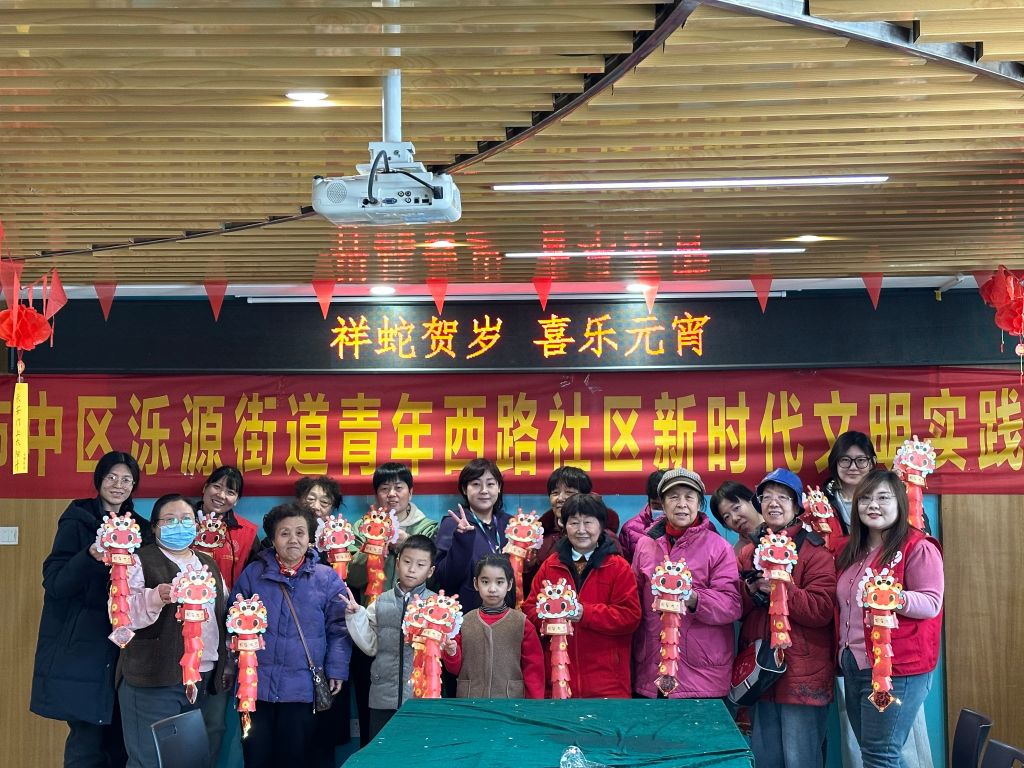 在元宵佳节临近之际,为增进社区居民的文化福祉,促进中华民族非物质文化遗产的传承与发扬,泺源街道社工站携手青年西路社区,精心策划并成功举办了以“祥蛇贺岁 喜乐元宵”为主题的元宵节活动。此次活动旨在通过亲身体验非遗手工花灯的制作过程,深化社区居民对元宵节传统习俗及手工艺文化的认知与情感联结。