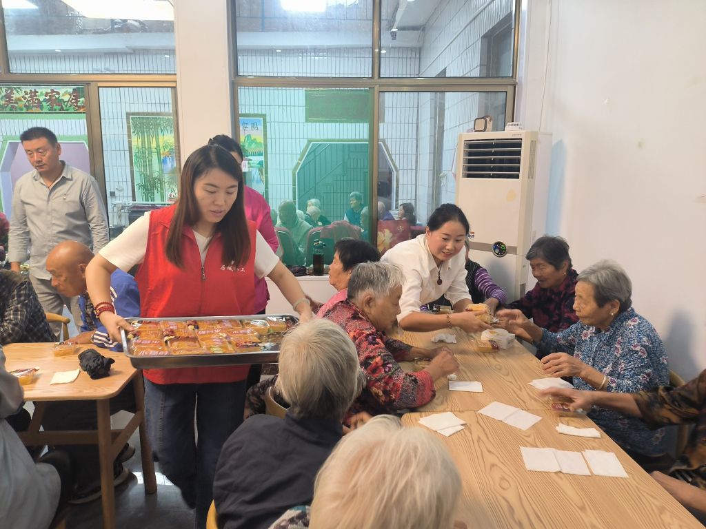 9月11日,社工站带领志愿者前期辖区幸福院,通过实地慰问的形式,为助餐老人提供别开盛宴的餐前活动。服务过程中,驻站社工与志愿者搀扶老人安全入座,为活跃现场氛围,大家“载歌载舞”,不一会儿老人们也跟着手舞足蹈,边唱边摆动,现场被一阵阵欢声笑语围绕。张奶奶(化名)表示,“年轻的时候可爱唱爱跳了,现在老了腿脚不好,不然高低得表演表演。谢谢你们带来这么欢乐的节目,我们真是打心眼里开心...”。其他老人也纷纷附和,太高兴了,感觉自己都年轻了,今天水饺得多吃两碗。就餐结束后,社工与老人耐心交谈,倾听老人年轻时的那些事儿,为老人提供充足的情绪价值,通过暖心又细心的服务,打造属于老人独有的“避风港”。