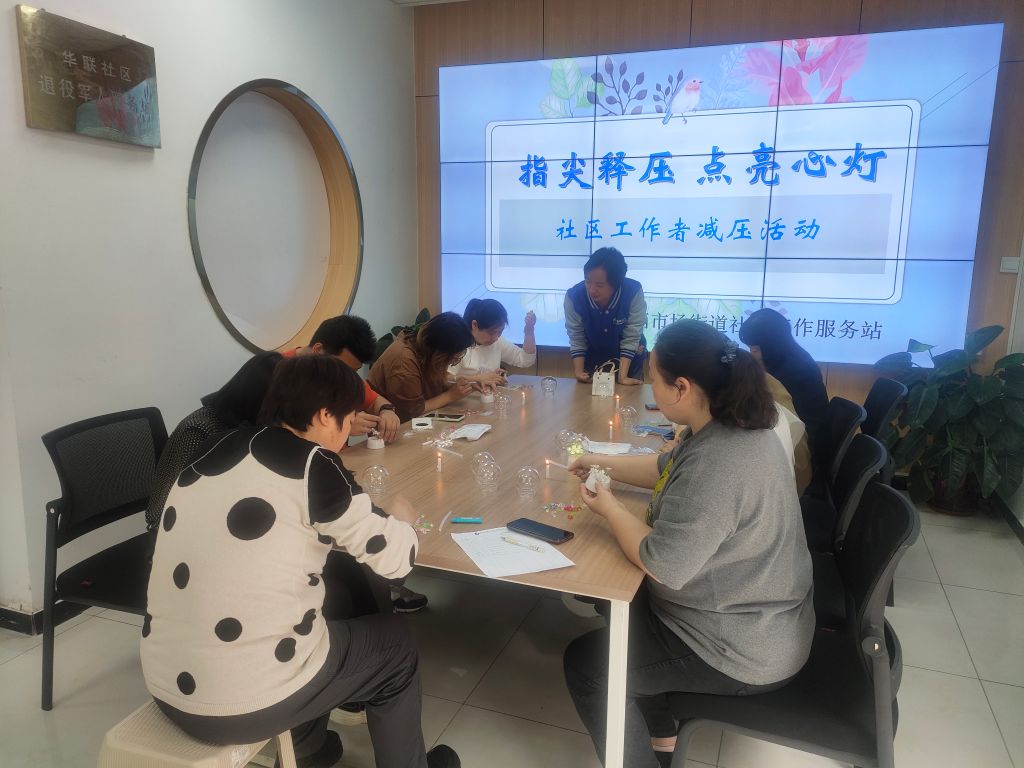 为缓解社区工作者长期积压的工作压力,提升心理健康水平,进而提高工作效率,以更加积极的状态投入到社区服务工作中。5月7日,西市场街道社工站策划了一场以手工创作为载体的“指尖释压 点亮心灯”主题活动,通过艺术疗愈与团队互动,帮助社区工作者释放情绪、重拾活力。