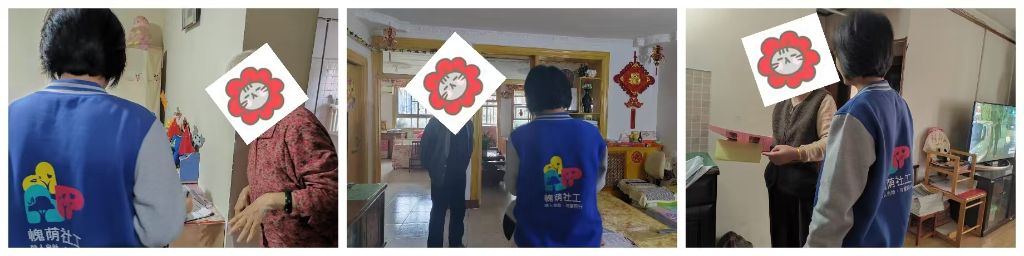 社工探访小组来到辖区内的几位老人家中,不仅为老人带去生活必需品,还特别准备了一些由康乃馨志愿服务队手工编织的保暖用品,以确保老人们能够安然度过即将到来的寒冬,最后还为老人们安装了烟感报警器来消除生活中的烟火隐患。在探访过程中,社工们耐心的叮嘱生活中的安全用电、燃气等,并细致地询问了老人们的健康状况以及日常生活中的困难,记录下了老人们提出的一些具体需求。同时,社工们也与老人们进行了亲切交谈,倾听他们的过往经历,分享近期社区内的趣事,为他们带来了不少欢笑。