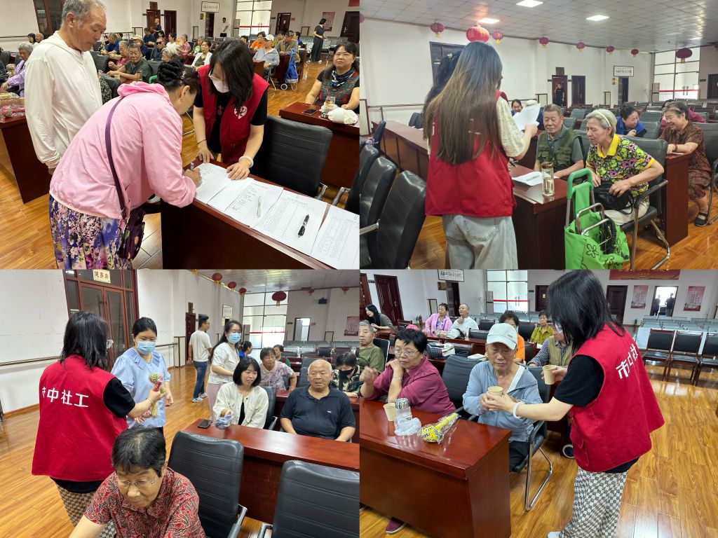 精心筹备,营造节日氛围。活动当天,白马山街道社工站的工作人员与志愿者们提前到达现场,精心布置场地,并细致准备了签到、茶水、艾草锤等活动所需物品。随着老人们陆续到达,社工与志愿者们有序引导他们就坐,并耐心解答他们的疑问,确保每位老人都能感受到节日的温馨与关怀。