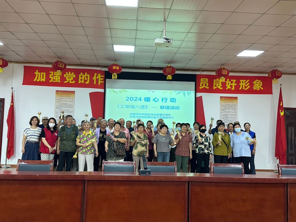 专业讲座,传授养生之道。活动特别邀请了济南可敏索码熵社会工作服务中心的资深志愿者,为现场的老年人带来了一场精彩的艾草养生讲座。志愿者们不仅详细讲解了艾草捶拍八虚的养生方法,还亲自示范如何精准拍打身体的“八虚”穴位,让老年人在轻松愉快的氛围中学习到了实用的养生知识。