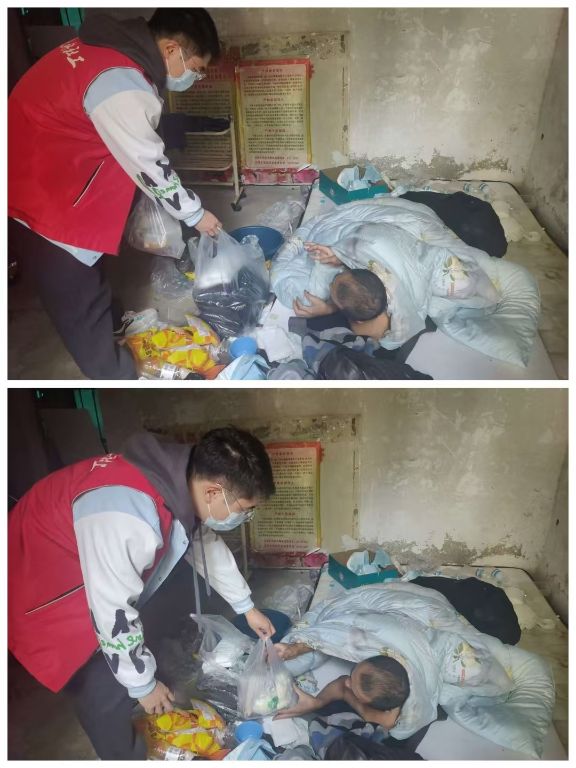 得知这一突发情况后,社工第一时间前往现场进行救助。赶到时,他们看到老人躺在地上双眼紧闭,赶忙上前将老人小心翼翼地搀扶起来,给老人拿来热水,做好应急处置。紧接着,社工与街道工作人员尝试询问老人的情况,但老人始终保持沉默,一言不发。眼看天色越来越暗,天气越来越冷,面对这一状况,社工当机立断,同街道商定先为老人寻找临时安置点,保障老人的人身安全。在这段时间里,社工始终坚守在老人身旁,给予他暖心安慰和悉心照料。