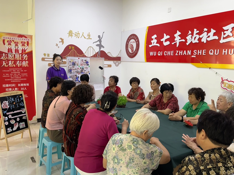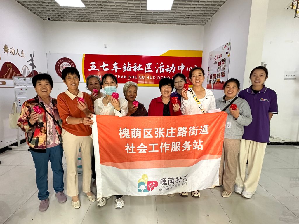 济南市槐荫区张庄路街道大多为新建小区,人口组成以新市民为主,约为12.8万人,老年人占比30%。张庄路街道社工站(以下简称社工站)入住五七车站社区以后,通过“下楼来”项目开展户外宣传时了解到,辖区居民大多数为新市民,老年人做完家中琐事,常常面临无处可去、生活无聊的状态,但他们渴望找到伙伴和组织一起聊天、活动并且志愿服务意识较高,动手能力较强。社工站决定针对其采用“服务+志愿”的模式,组织开展“暖艺坊”手工志愿小组,以手工小组为切入点,为其打造一个社交、学习、志愿的服务平台,促进新市民融入,丰富精神文化生活,增强社区凝聚力。