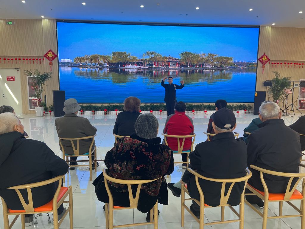 文艺演出在热烈的掌声中拉开帷幕,济南市曲艺团的演员们为老人们精心呈现了多个极具齐鲁风韵的节目:山东大鼓《有心长做济南人》,将济南的风土人情、文化底蕴展现得淋漓尽致,鼓声激昂;相声《论捧逗》融入养老院日常生活趣事,两位演员妙语连珠,逗得老人们前仰后合;快板《幽默小段》以明快的节奏、幽默的方言,将山东的风土人情娓娓道来,引得老人连连拍手叫好;相声《请公公》同样赢得了长者们的喜爱,他们以诙谐幽默的方式讲述着家庭琐事,让长者们感受到了亲情的温暖与生活的乐趣;山东琴书《偷年糕》用独特的唱腔,深情的演绎市井故事,老人们回味无穷。