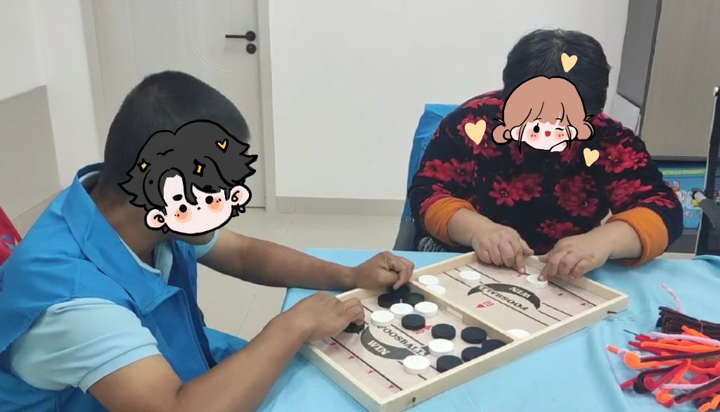 弹弹棋作为一种策略与技巧并重的游戏,不仅考验参与者的反应速度,更锻炼他们的逻辑思维能力。在社工的耐心指导下,参与者们逐渐掌握了游戏技巧,棋盘上的每一次弹跳都充满了智慧的火花。尽管棋局有胜有负,但每个人都在享受这个过程,互相学习,互相鼓励。