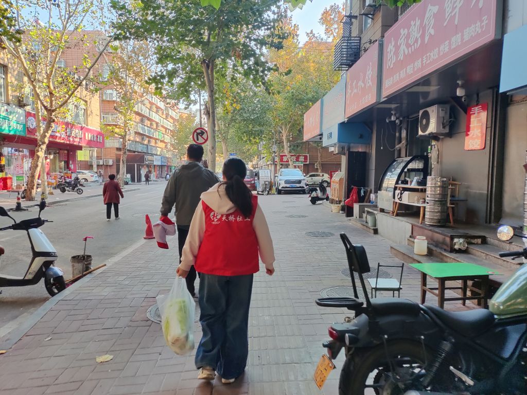 社工不仅关注到老人的生活需求,为其送上新鲜蔬菜,更重视他们的精神世界,耐心与老人交流。社工仔细倾听他们的生活烦恼,分享生命旅程中的往事,一起回顾那些有趣的生活琐事。通过倾听和陪伴,缓解孤独感,为高龄独居老人提供情感上的支持。一抹亮眼的社工红,温暖了高龄独居老人的心灵,让心与心之间的距离更加亲近,社工用实际行动,助力社区营造“爱老、敬老、助老”的良好氛围。