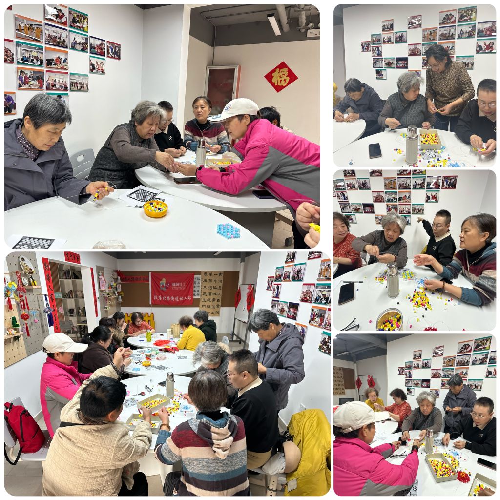 随着社工服务持续推进,老人们的精神面貌焕然一新。在社工的鼓励下,她们勇敢踏出第一步,参与到社工站的对外宣传活动中。社工日当天,她们身着鲜艳志愿者马甲,虽步伐不再矫健,却满脸自豪地向过往居民发放资料,讲述社工站如何改变自己生活,质朴言语打动人心;八段锦推广时,她们提前苦练,一招一式有板有眼,带动邻里乡亲强身健体,成为社区一道活力风景线。而这次,她们主动参与到手工志愿活动中,要把自己所学的串珠手艺分享出去。
