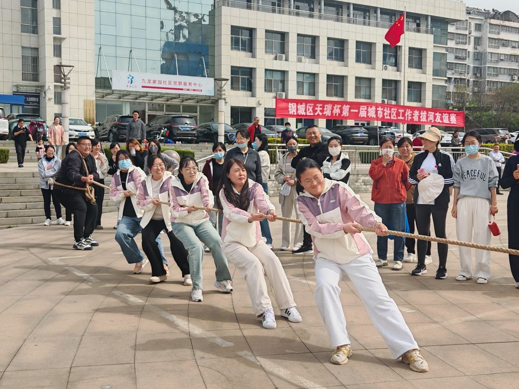 为响应全民健身国家战略,广泛开展群众身边的全民健身赛事活动,社工助力此次钢城区“天瑞杯”第一届城市社区工作者拔河友谊赛,社工们身着统一的红色马甲,成为了活动上一道亮丽的风景线。他们分工明确,各司其职。一根绳,一条心,迸发的是力量,凝聚的是温情,用汗水诠释团结,用拼搏传递精神!
