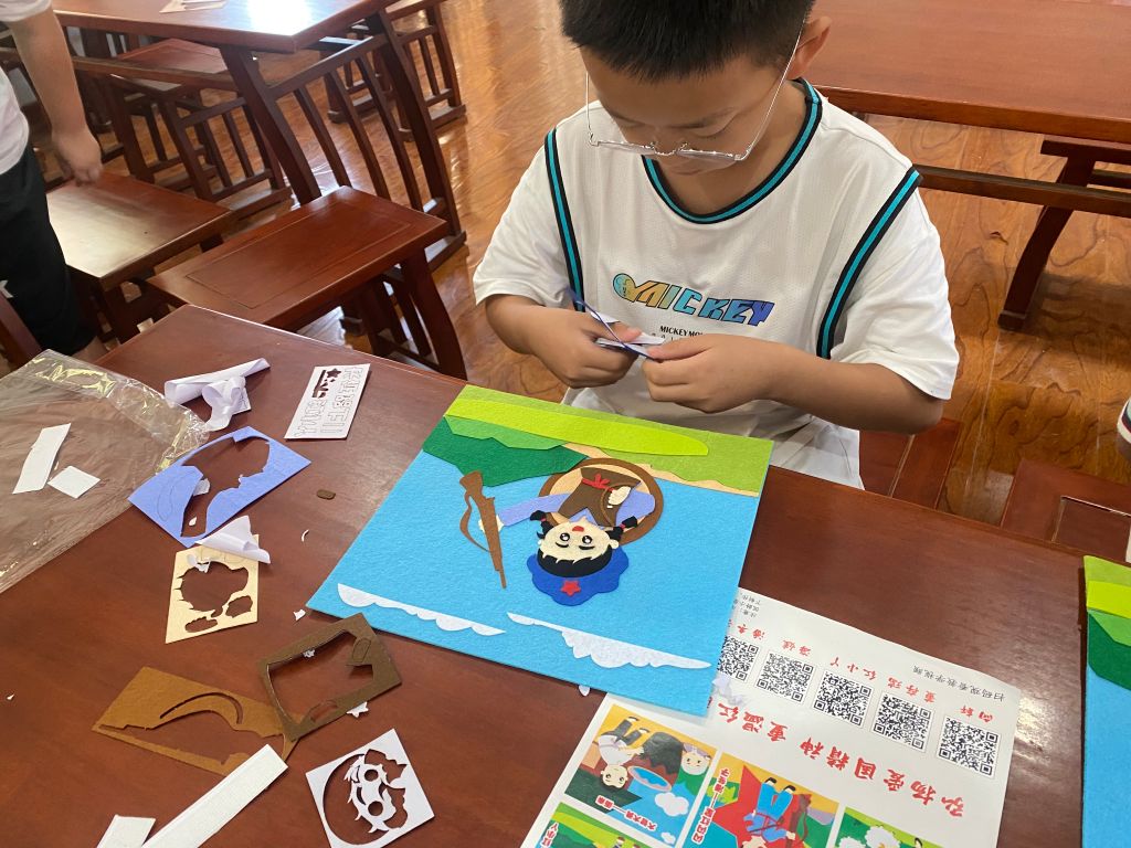 在制作的同时,社工为孩子们讲述了人物贴背后的小故事。从红军战士们的英勇无畏到他们的坚定信念,每一个故事都仿佛将孩子们带回到了那个波澜壮阔的革命年代。那些英勇无畏的红军战士,在艰难困苦的岁月里坚定前行,他们的故事深深打动了孩子们的心。