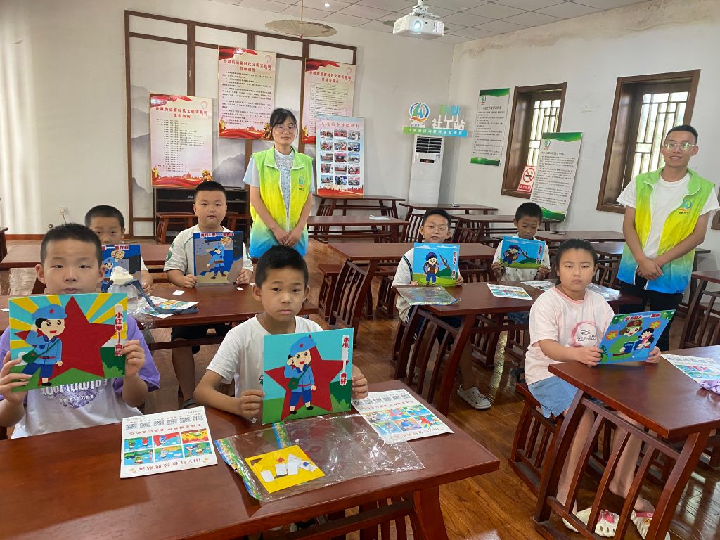 红色记忆,传承不息。8月30日孙耿街道社工站开展“红星闪闪放光彩—人物贴·忆往昔”儿童成长小组。本次活动服务人数7人,孩子们积极参与,共同度过了一段难忘的红色时光。