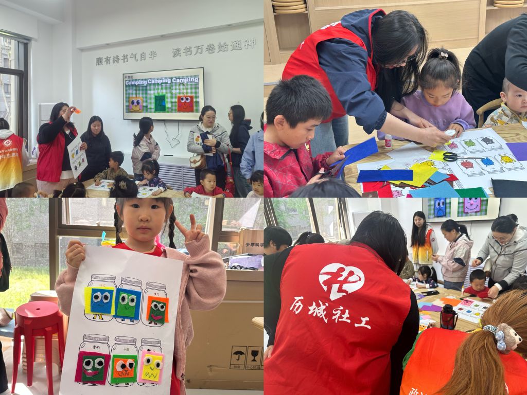 在“情绪表情包分类”的手工环节中,社工提前设计包含20种基础表情的不织布表情素材库。在亲子协作下,不仅一个个生动的表情诞生了,也在无形中促使孩子们构建出个性化情绪认知体系。