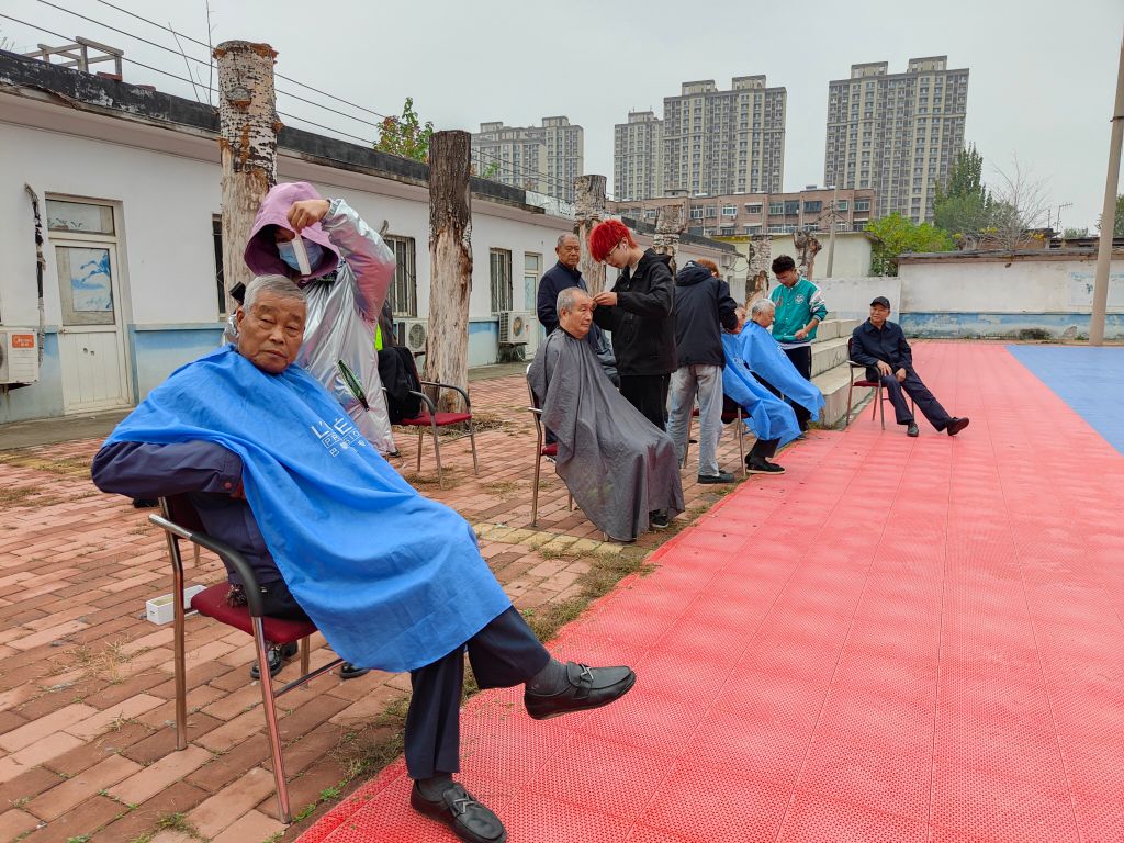 另一边的义剪现场,老人们早早来到现场等候。理发师细心地为老人围上围布,拿起剪刀和梳子,为老人们修剪头发。他们一边理发,一边耐心倾听老人们的需求和意见,确保每一位老人都能得到满意的发型。在理发师的巧手下,老人们的头发逐渐变得整齐干净,精神面貌也焕然一新。