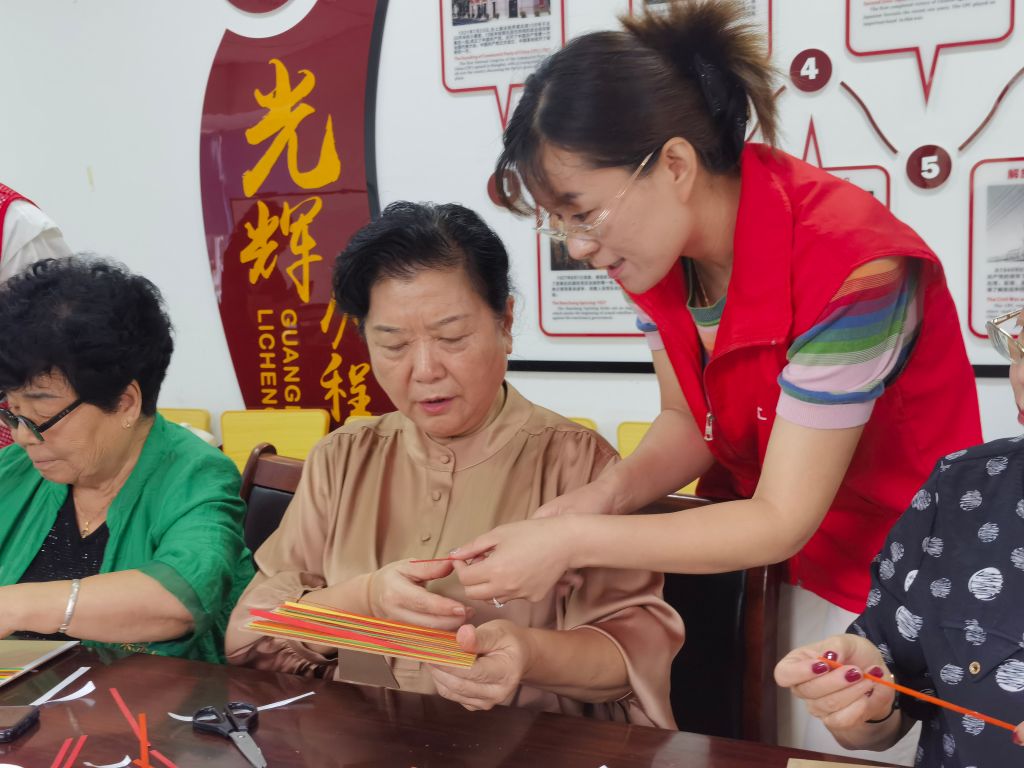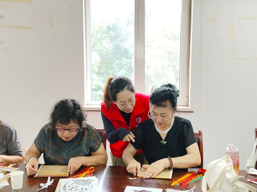 活动当天,社工站的社工早早来到会场,为活动做准备,活动开始后为居民们讲解竹编画的历史和制作技巧。耐心地指导大家如何挑选竹条、如何编织出各种图案,以及如何将竹编与画作结合,创作出独一无二的艺术品。大家在社工的带领下,纷纷动手尝试。老人们回忆起儿时的中秋,那时的竹编灯笼是他们最美好的记忆之一;孩子们则对这种新颖的手工艺充满好奇,他们认真地编织着每一根竹条,希望自己的作品能在中秋夜挂上家中的窗前。