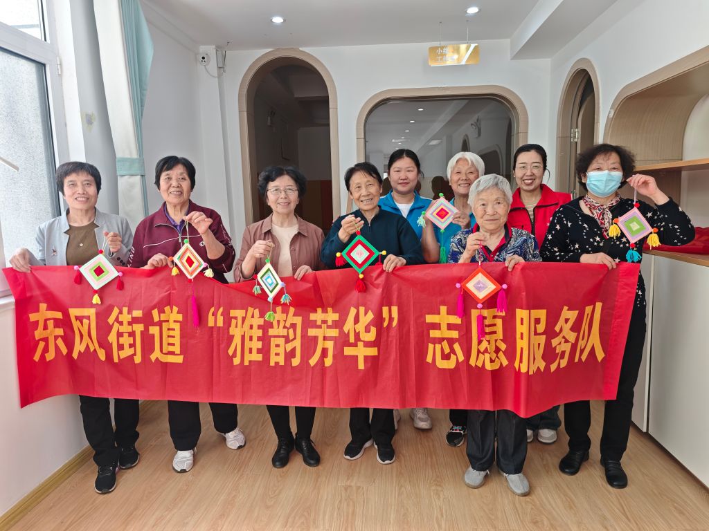 4月16日,东风街道社工站精心策划了一场别开生面的手工制作活动,特别邀请了七里河幼儿园的手工老师,带领辖区老年人一同制作曼达拉上帝之眼毛线挂件,为老年人的生活增添了一抹绚丽色彩。