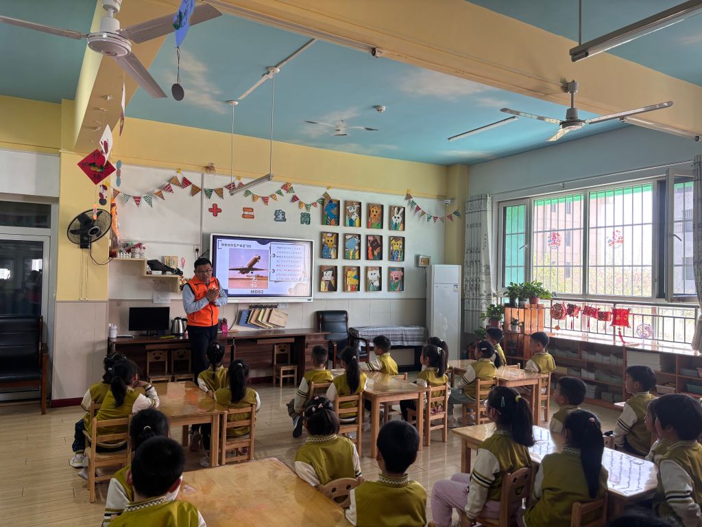 活动伊始,临港社工通过生动有趣的图片、视频和实物模型,为孩子们带来了一场精彩的科普讲座。在动力小飞机科普环节,社工深入浅出地介绍了动力小飞机的发展历程、基本构造和飞行原理,让孩子们了解到飞机的机翼、尾翼、螺旋桨等部件的重要作用,以及电机和电池如何为飞机提供动力。孩子们听得全神贯注,不时提出有趣的问题,展现出对科学知识的强烈渴望。活动通过《世纪济南机场》专题科普讲座,围绕济南临港经济开发区航空交通发展,生动讲解珍贵历史影像,向孩子们呈现济南遥墙机场从起步到腾飞的历史变迁。