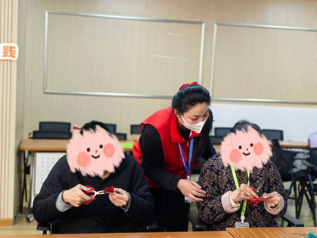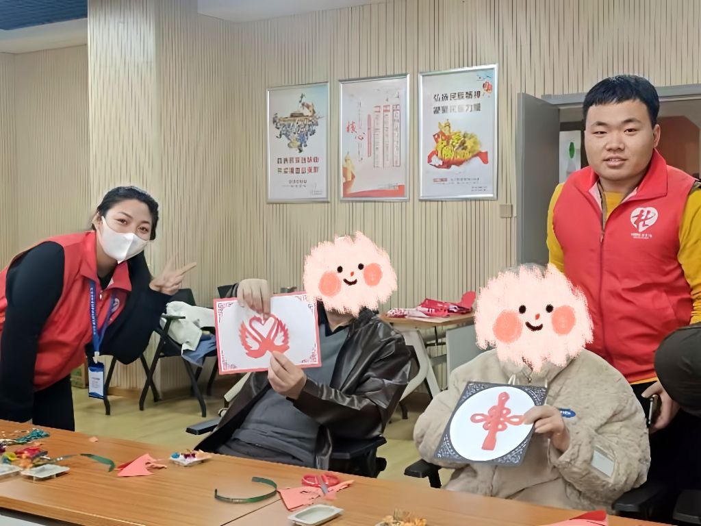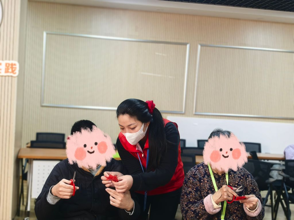 活动现场,一张张彩纸在残疾人朋友手中轻盈翻转,剪刀起起落落间,一幅幅精美的剪纸作品逐渐成型。尽管他们面临着身体上的不便,但专注的神情和灵巧的动作无不透露出对剪纸艺术的热爱与执着。在社工和志愿者的耐心协助下,从折叠纸张的基础步骤到勾勒复杂图案的精细环节,每一位参与者都全心投入,攻克了一个又一个技巧难关,将心中对美好生活的向往融入每一道剪痕之中。