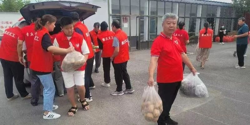 志愿者们带着提前准备好的食材,前往宋家埠村幸福院。当幸福院志愿者接过食材时,脸上洋溢着笑容,口中说着感谢的话。