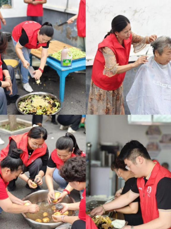 活动现场,闻讯而来的长者们早早到来,相互打着招呼,说说笑笑地有序排队。社工们与长者们亲切的唠家常,互动聊天,现场气氛融洽。随后章丘义工的志愿者们为村内行动不便的老人进行免费理发。围罩衣、打湿头发、剪发,并耐心细致地询问老人对剪发的要求,一边为他们剪发,一边与他们亲切的聊起家常,共同探讨理发的心得。老人们看着自己剪过的头发,心情也跟着美丽起来,连声道谢,夸赞志愿者的手艺好、品德高。另一边志愿者和社工共同清洗切菜、下锅烹饪……一阵忙碌过后,一道道热腾腾、香喷喷的菜肴相继摆上了桌,围坐在周围的老人们见状都绽放出了幸福、满足的笑容。