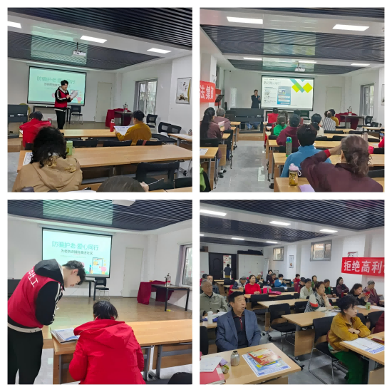 社工站通过生动的PPT讲座,详细介绍了各种常见诈骗类型,包括电信诈骗、网络诈骗、金融诈骗等,结合真实案例深入浅出地分析诈骗手段及防范策略。讲座之后,社工还与居民们进行了互动问答,解答了大家日常生活中遇到的防诈骗困惑,增强了活动的互动性与实用性。同时,社工站给每一位参与者发放了防诈骗知识手册和科普小报,确保大家能够将所学知识带回家,持续提高防骗能力。在面对面的讲解环节中,社工与居民们进行了一对一的交流,深入讨论如何识别真假信息、如何防范不同类型的诈骗、遇到可疑情况时应如何应对等实际问题。