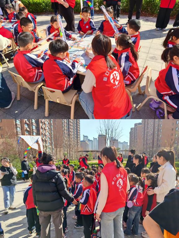 在手绘风筝区,社工们与孩子们一起动手制风筝。他们拿起画笔,在风筝上描绘出五彩斑斓的图案和梦想。孩子们兴奋地讨论着自己的设计想法,社工们则在一旁给予指导和鼓励。当风筝终于飞上蓝天时,孩子们欢呼雀跃,社工们的脸上也露出了欣慰的笑容。这次活动不仅激发了孩子们的创造力和想象力,也让他们感受到了社工的关怀和陪伴。
