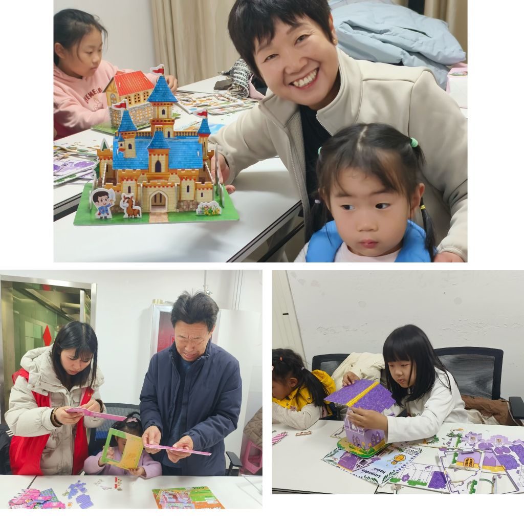 小组活动过程中,首先由社工带领组员共同回顾小组历程,并邀请组员分享在小组中的收获与成长。随后,通过共创美好家园3D插画环节,引导组员理解社区的美好环境需要大家的共同维护,同时播放前期组员参与社区环境治理志愿活动的服务影像,帮助组员更好的理解作为小小志愿者如何为社区贡献自己的一份力量。孩子们听的津津有味,家长也纷纷表示活动非常有意义。最后,通过拼插3D立体家园,激发组员对社区的珍惜与爱护之情。
