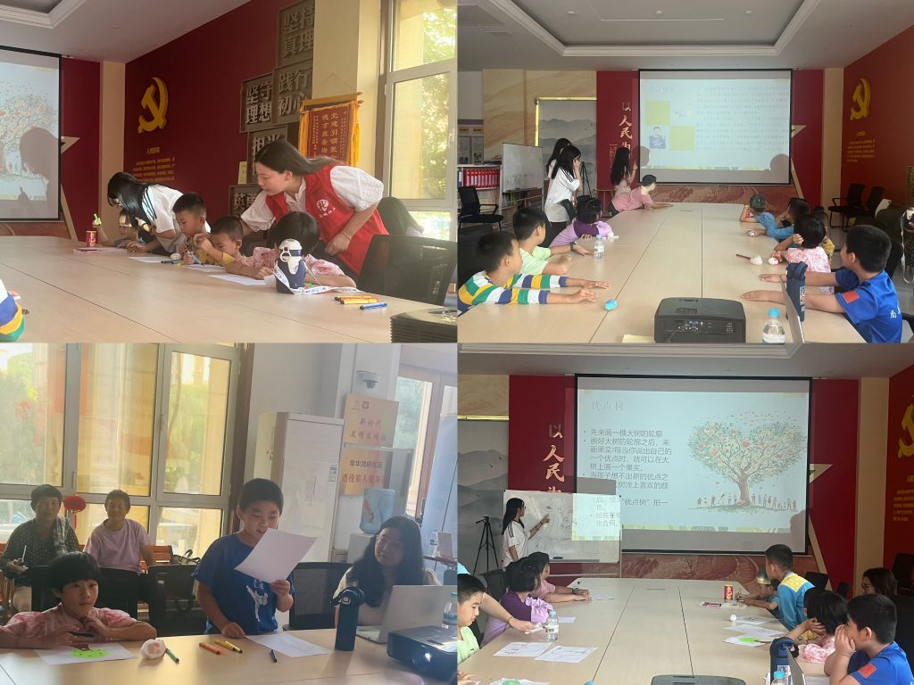 活动伊始,通过鼓励孩子们讲述自己“爱与被爱”的小故事,来引导孩子们思考如何爱自己和爱他人。随后在“我的优点树”环节,通过绘画的方式使孩子们发现了很多原来被自己忽视的优点,以此帮助他们系统地认识和探索自己的品格优势,在“出谋划策”环节,让孩子们为情境中的“小丽”出谋划策,通过亲身体验的方式,让孩子们进一步学会如何爱、表达爱。