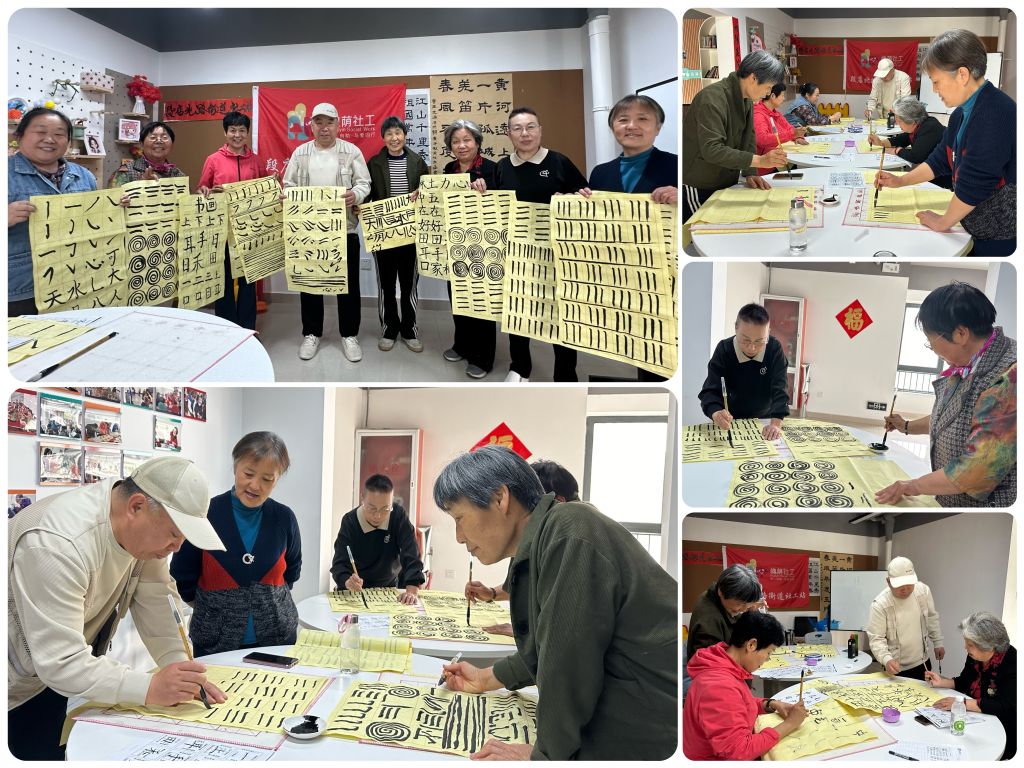 在段店北路街道社工站的持续服务与陪伴下,空巢老人王阿姨从最初的“受助者”逐渐转变为“助人者”,不仅积极参与志愿服务,更动员辖区独居老人郭叔叔发挥书法特长,加入社工站“兴光赋能团”特殊群体志愿服务队伍。4月17日,郭叔叔首次在社工站开展老年书法教学,成为社区互助养老的又一暖心范例。