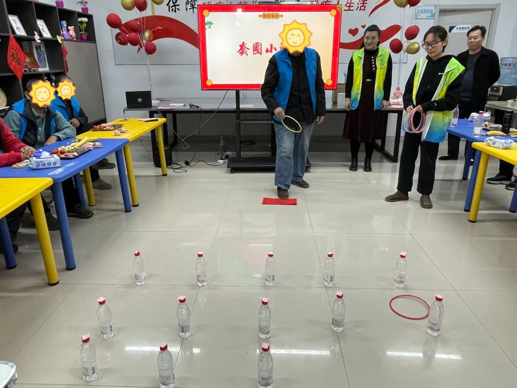 游戏环节更是趣味横生。套圈游戏处,残疾朋友站在规定线外,目光专注地瞄准奖品,收音机、大米、面粉、洗衣液等丰富礼品吸引着众人参与,现场加油声、欢呼声此起彼伏。“心有灵犀”游戏中,两人一组配合默契,表演生动、猜测准确,最终获胜队伍赢得了精美茶壶,喜悦之情溢于言表。