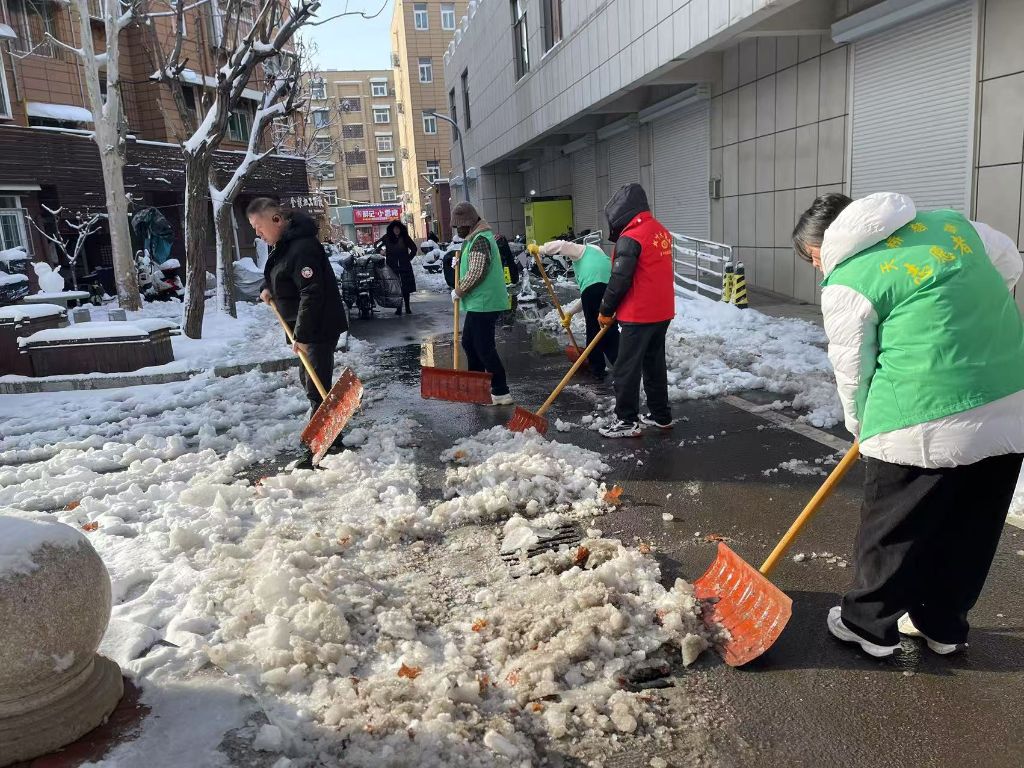 3月2日,济南市突降大雪,一夜之间,雪花纷纷扬扬飘落,给城市换上了一身洁白无瑕的盛装,街道像是铺上厚厚的白色绒毯,积雪迅速堆积,道路变得湿滑难行,车辆行驶艰难,行人每一步都小心翼翼,稍不留意就可能滑倒。北村街道社工站关注到辖区居民出行难题,迅速响应居民需求,联合社区志愿者、社区社会组织成员开展扫雪除冰志愿行动。
