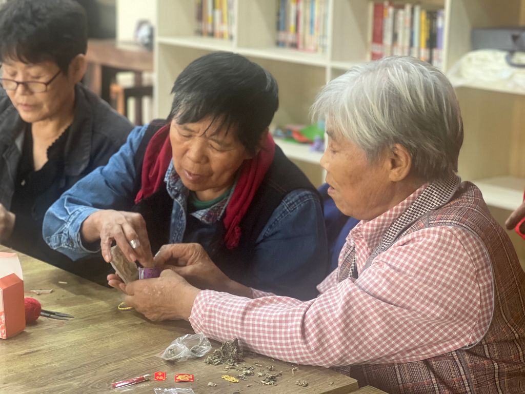 不一会儿,一个个色彩斑斓、样式各异的茱萸艾草香囊在居民们的巧手中诞生,散发出阵阵香气,沁人心脾。老人们手捧自己制作的香囊,脸上洋溢着幸福的笑容,纷纷表示这是他们度过的最有意义的一个重阳节。